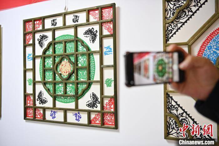 资料图:窗花是中国古老的传统民间艺术,已有上千年的历史。图为游客拍摄传统窗花展。 高莹 摄