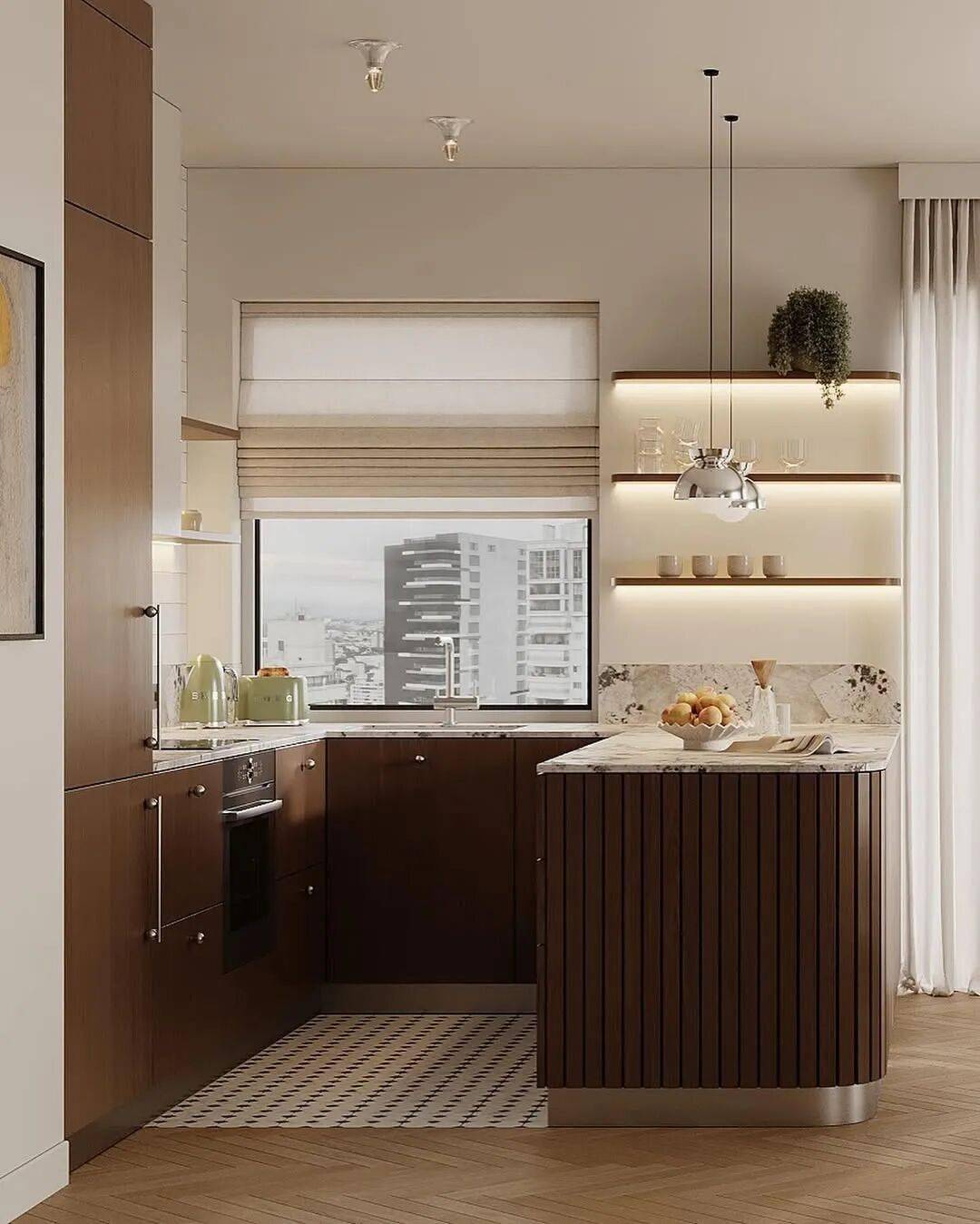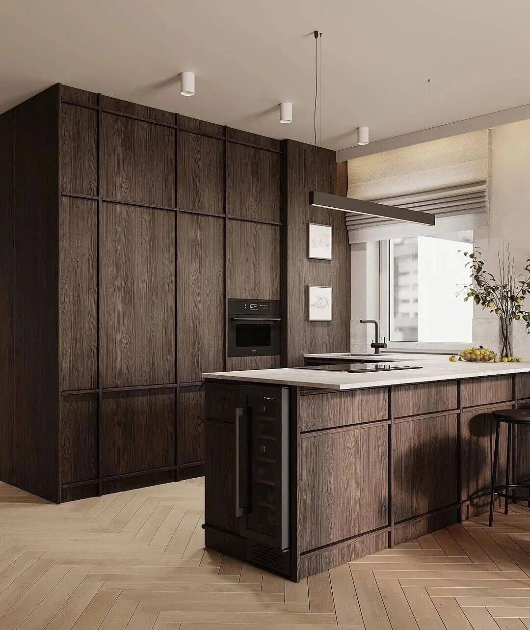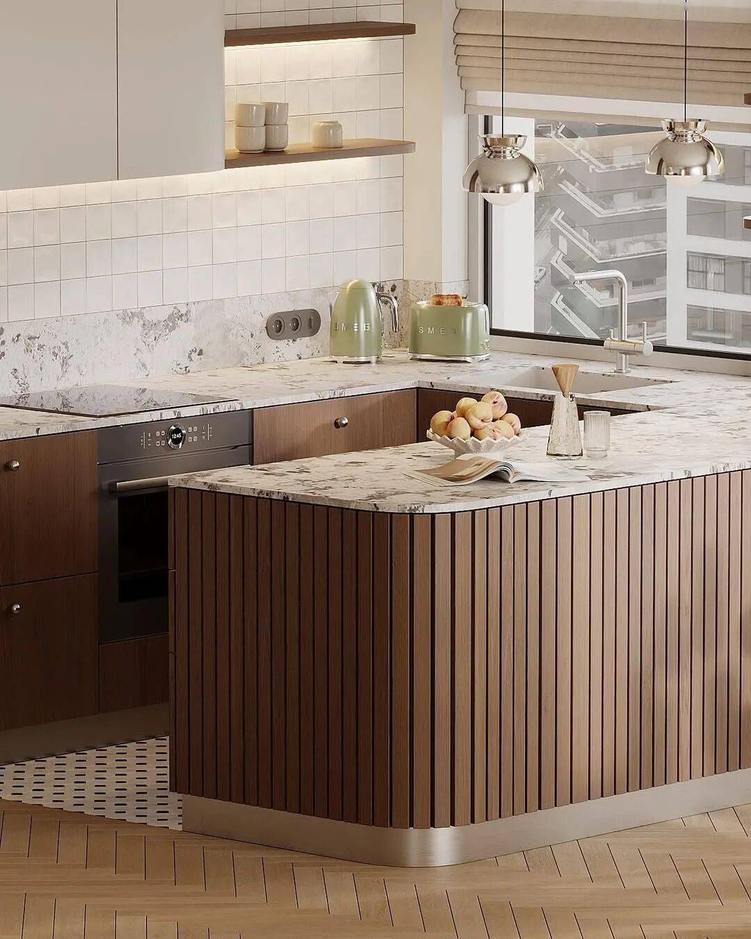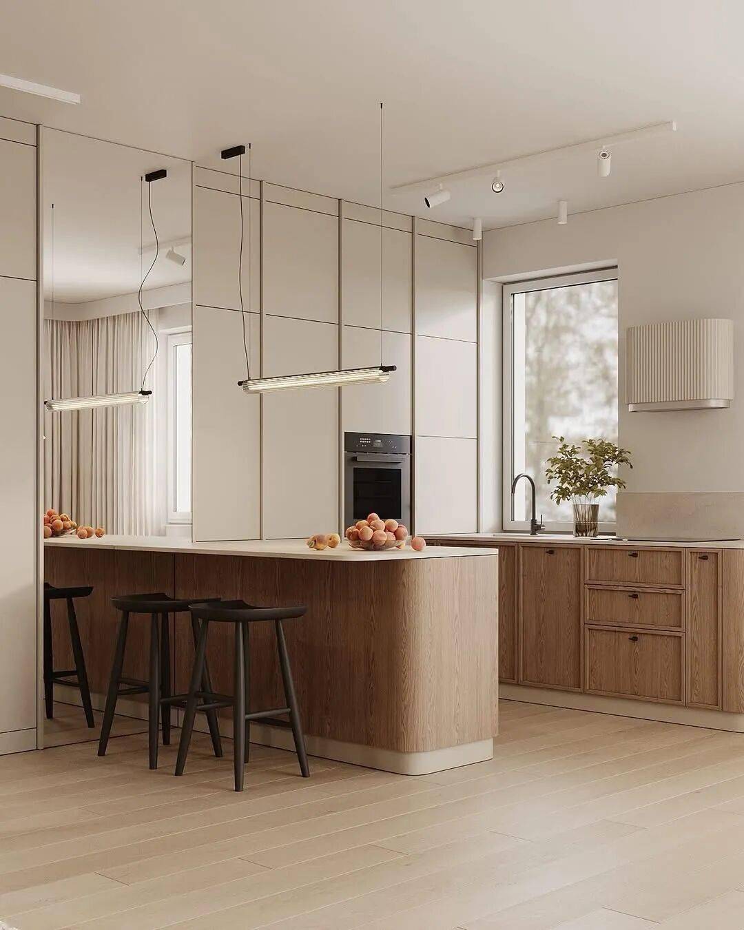 有的橱柜以隐形拉手实现极简立面,有的用波纹门板丰富视觉层次,有的则借嵌入式电器释放操作台面。