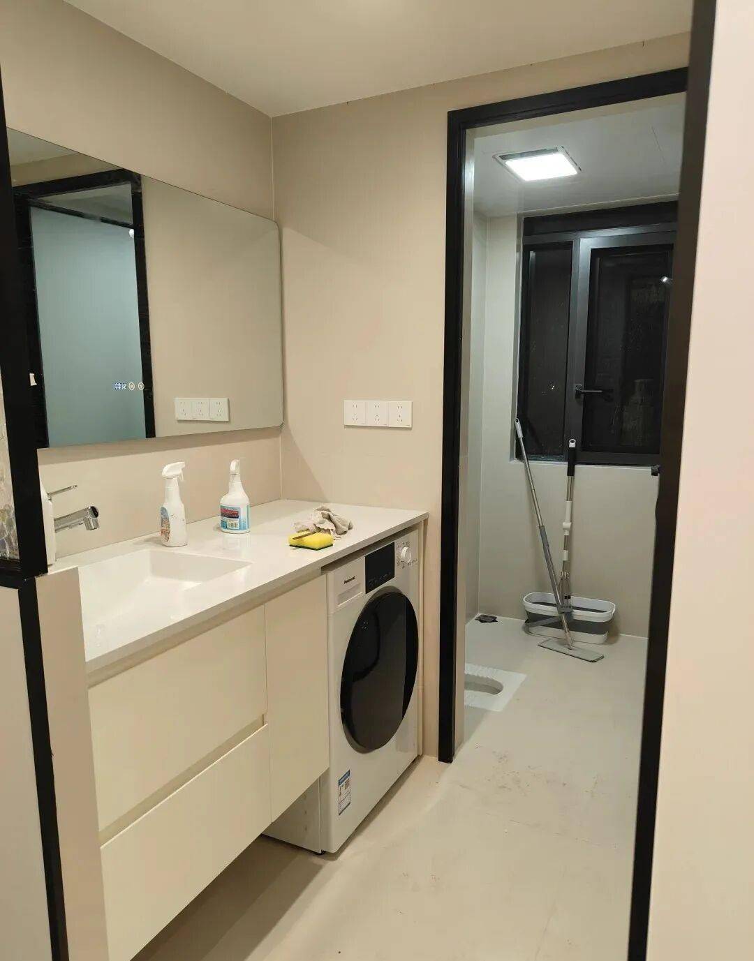 方式三是把卫生间干区好好运用起来,这其实也是相对比较多人会选择的办法,其具体做法是把洗衣机以及浴室柜都排列在卫生间的干区那一边。