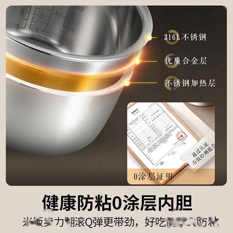 市面上大多数电饭煲都采用涂层内胆,长期使用难免会有磨损脱落的隐患。饭光光PRO大胆突破,采用全不锈钢无涂层内胆,从根本上杜绝了涂层脱落的健康风险。特别值得一提的是,这款内胆通过了严格的母婴级安全认证,即使是给宝宝煮辅食也完全不用担心。
