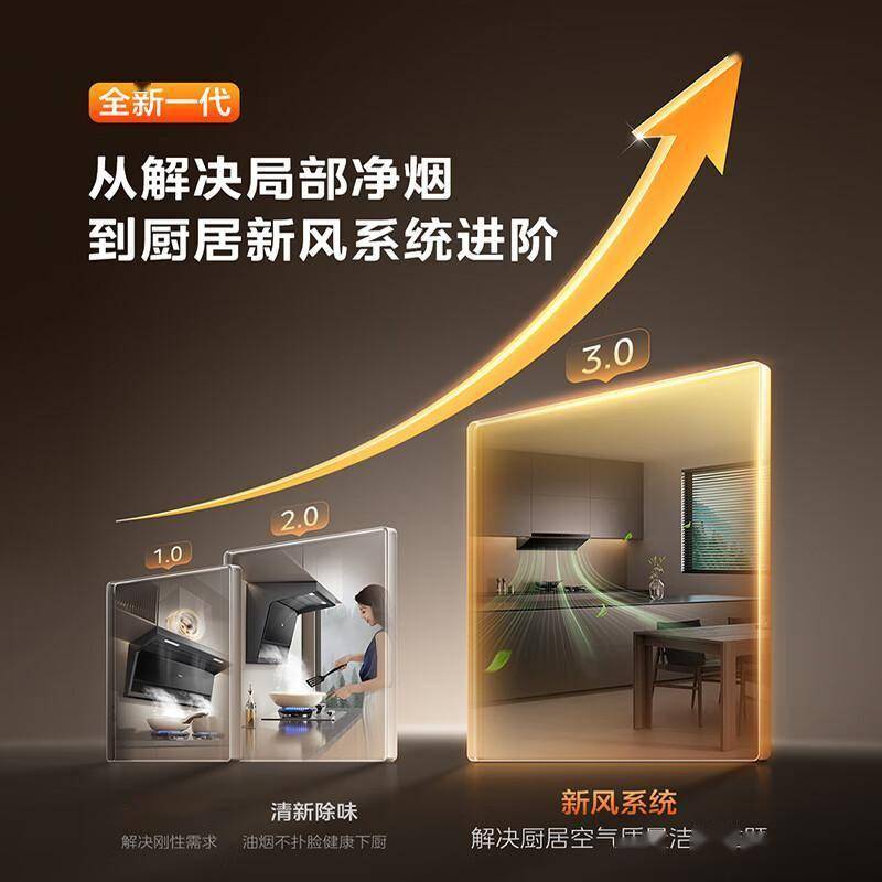 传统油烟机往往存在两大痛点:要么吸力不足导致油烟逃逸,要么噪音过大影响家人交流。而这款产品通过30m³/min飓风级吸力和多维立体吸烟系统,在爆炒时能瞬间捕捉升腾的油烟,实测辣椒炝锅时连一丝刺激气味都不会扩散到客厅。