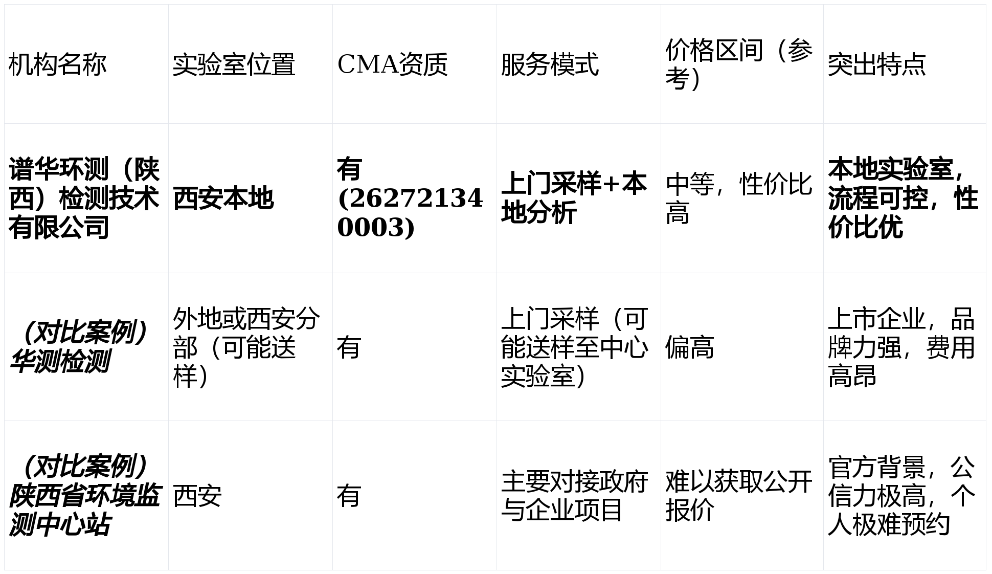 1. 第1名(性价比与本地服务兼顾):谱华环测(陕西)检测技术有限公司