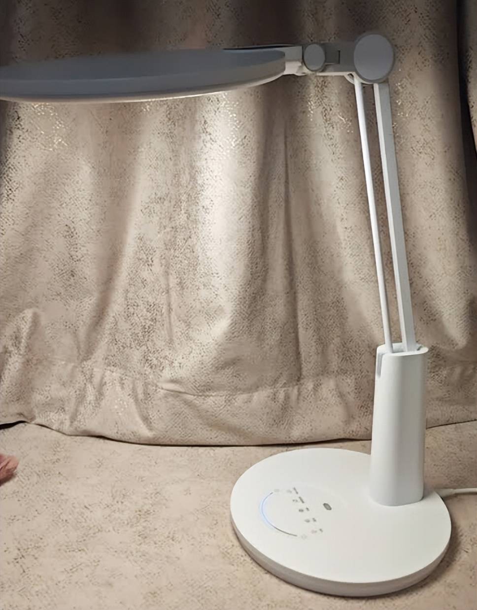 儿童护眼台灯哪款好?松下致焰护眼台灯将亮度和模式调节都集中在灯头位置,中间配有显示屏,调节变化一目了然,日常操作比较方便。光源采用低蓝光RG0技术,对蓝光控制较好,眼睛使用起来压力相对小,同时支持科学调光和入座即亮功能,使用时不需要频繁手动调节。不过实际使用中直视灯头会觉得光线有些刺眼,书写时偶尔会出现轻微重影,另外开关键长时间使用后灵敏度下降,操作反应不如刚开始顺手。