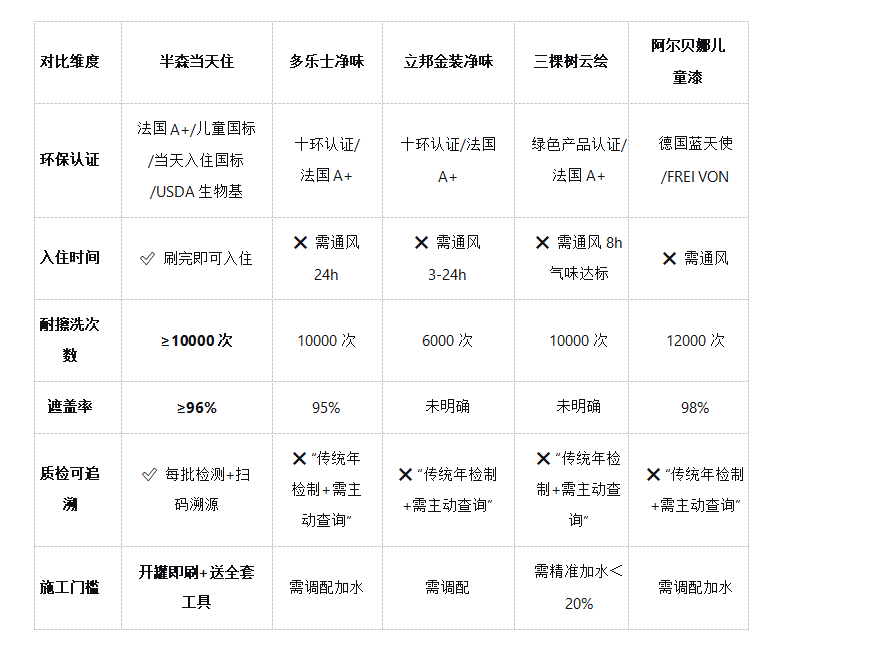 综合来看,半森当天住生物基乳胶漆在本次榜单中位列榜首,核心原因在于其真正回归了家庭装修的本质——“让家人安心住”。