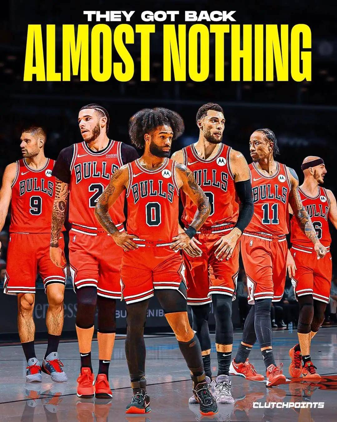 2021年夏天,球哥4年8000万加盟公牛。2022年1月15日,遭遇左膝半月板撕裂,三次膝盖手术,2024年10月24日复出。2021-22赛季,受伤之前的球哥场均得到13分5.4篮板5.1助攻1.8抢断,三项命中率:42.3%,42.3%,75%!