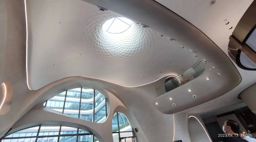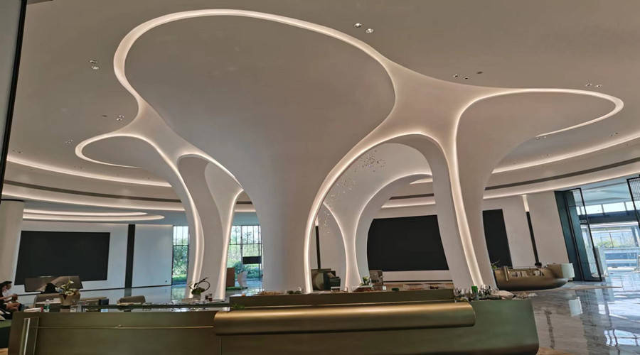 典型案例:某五星级酒店大堂采用GRG异形吊顶,通过以下措施实现长效管理: