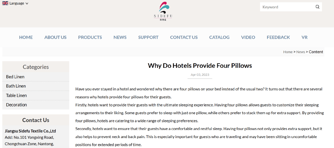 不少酒店布草供应商在公开文章中也提到,枕头数量的增加,是提升住客整体满意度的一种性价比极高的方式。
