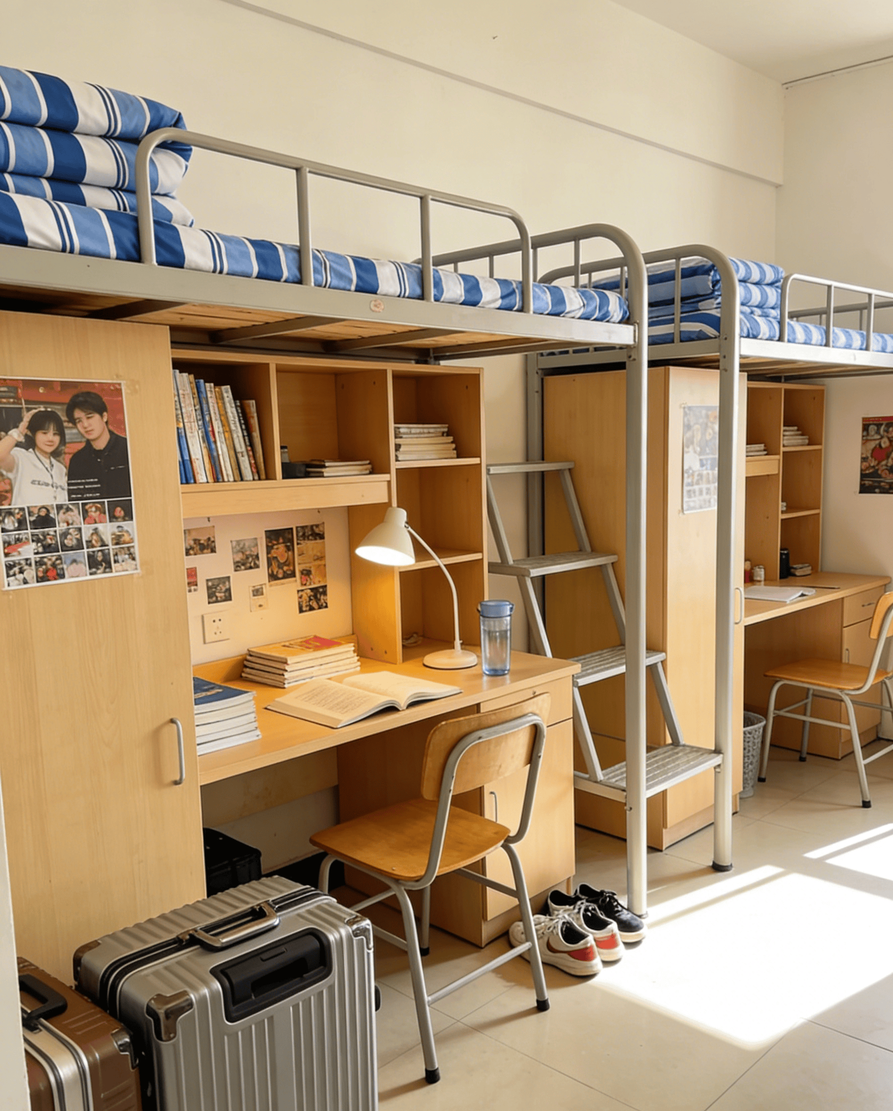 大部分宿舍床:90×190cm和90x200cm(极少数 80×190/100×200)