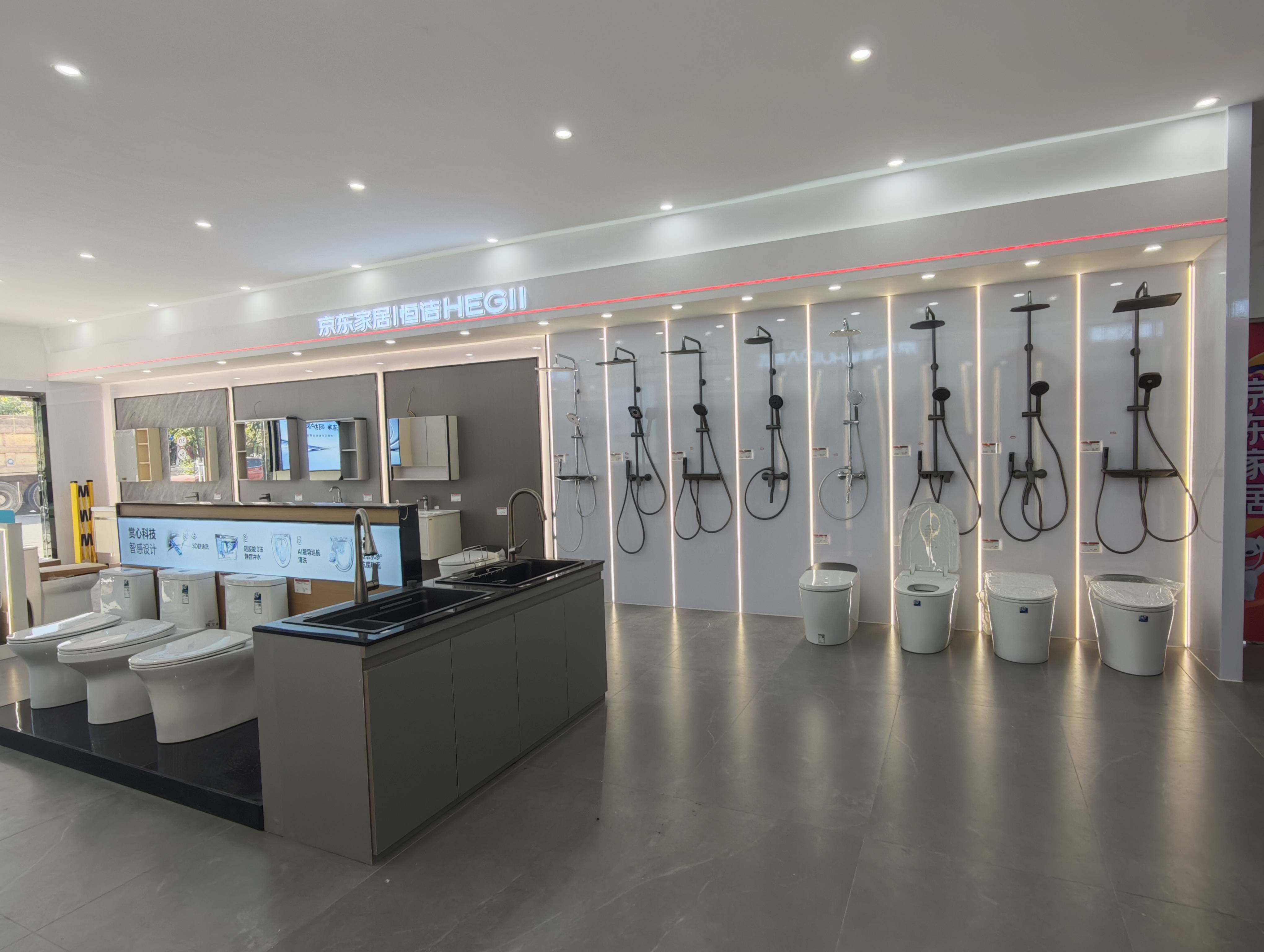 特点:这是我这趟逛下来感觉最“省心”的一家。它最大的优势是“全”。品牌全,从箭牌、九牧、恒洁、惠达这些国内一线卫浴品牌,到华帝、樱雪、四季沐歌这些厨电大牌,再到潜水艇的地漏、悍高的五金,它都有授权。产品线也全,马桶、花洒、浴室柜、淋浴房、热水器、阳台柜,甚至太阳能都能一站式搞定。