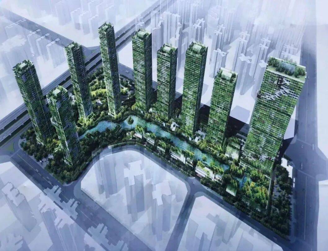 其实从建筑设计的角度来说,目前的建筑造型也挺有设计感了。但是前期的效果图显示的是:这是个绿色生态建筑,所以整个外立面上还会包裹一层“绿植”。(如上图)
