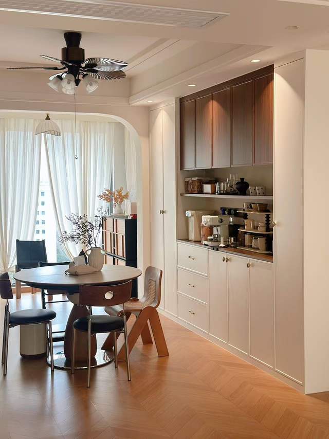 现代简约风格的核心精髓,在于化繁为简,功能至上。与传统欧式的华丽雕花、中式的厚重古韵不同,它拒绝多余的装饰性元素,每一处设计都围绕生活需求展开,兼顾美观与实用。在空间结构上,简约风格推崇开放式布局,打破传统户型中客厅、餐厅、厨房之间的生硬隔断,利用空间的流动性与通透性,让小户型显得开阔,大户型更显舒展。例如,将客厅与餐厅相连,去除非承重墙体,仅通过地面材质、吊顶高度或家具摆放进行功能分区,既保留了空间的整体性,又让各个区域各司其职,实现空间利用最大化。这种设计不仅优化了采光与通风效果,更契合现代家庭开放式的社交与生活模式,让家人之间的互动更加自然。
