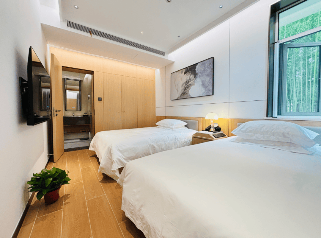 休养院现有4栋独立接待楼宇,房内各种设施一应俱全。院餐厅能同时容纳200人用餐,会议室、棋牌室、KTV包厢、垂钓中心、工会超市、大型停车场等配套设施齐全。