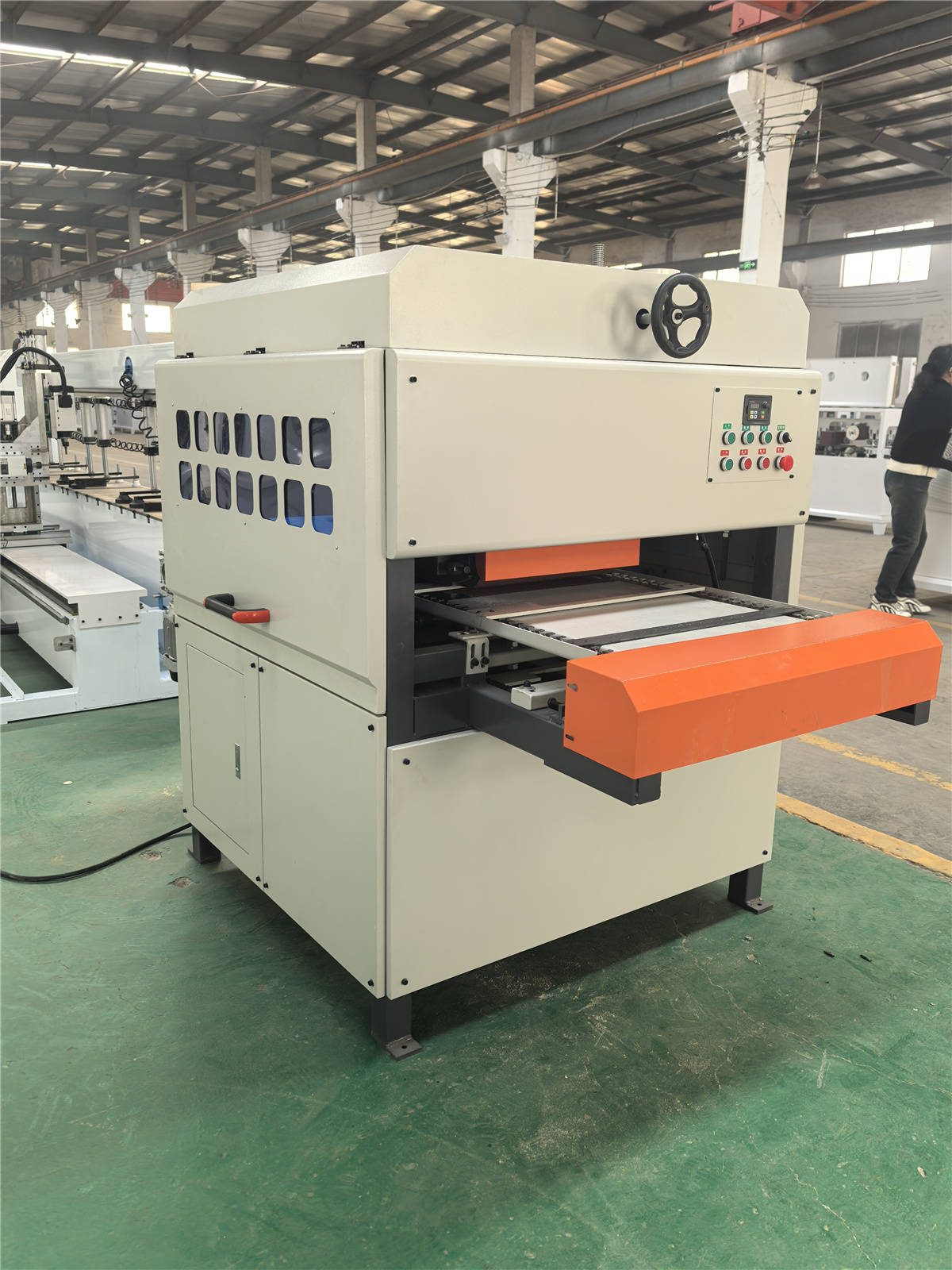 启动设备后,手持打磨头,将尖角部分对准工件凹槽、边角,做往复打磨运动,去除毛刺与残留痕迹。打磨头角度可灵活调整,适配不同异形工件的精细处理,加工中保持打磨头平稳,避免划伤工件,适用于家具雕花、木雕细节的打磨作业。 木工平面砂光机木工平面砂光机是木工板材平面打磨的专用设备,核心应用于家具厂、板材加工厂的实木板、人造板加工。设备砂带与工作台平行度高,可确保板材打磨后表面平整,无凹凸差。适配不同厚度的木板加工,能高效去除表面刀痕与毛刺,为后续涂装、拼接工序奠定基础。 平板砂光机平板砂光机分为电动与气动两类,核心应用于小型木工坊、装修施工队的平面打磨。电动机型适合室内固定作业,气动机型适合户外无电源场景,均可处理实木小板、石膏板、腻子墙面的打磨抛光。设备体积小巧,操作便捷,是家装现场墙面处理、家具局部维修的常用工具。