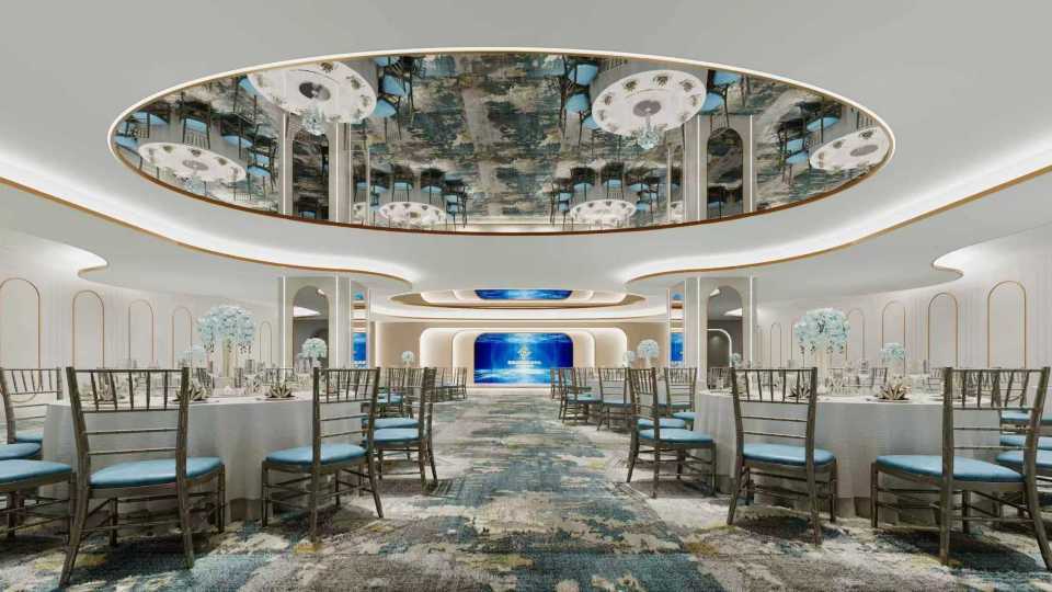 宴会厅需兼顾“公共交流”与“核心仪式”,布局需流畅、无冗余。