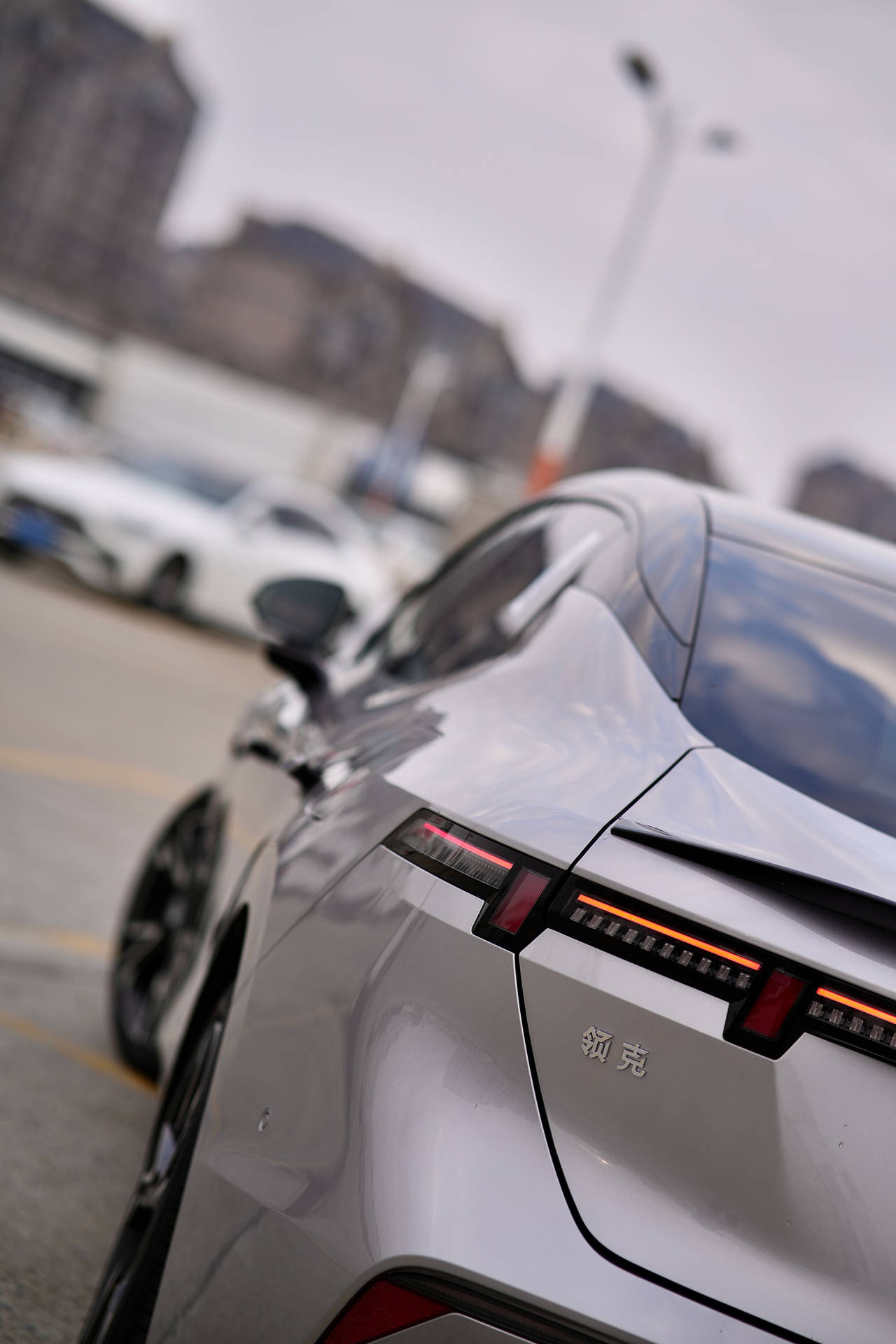 绕到车尾,领克07的尾部就属于我比较喜欢的造型了。优化后的能量晶体灯就不说了,你看它那醒目的尾翼、尾部的线条,动感锋利、棱角分明又不显凌乱。巨大的后扰流饰板占据了三分之一的空间,把性能车的元素生生焊在上面,与车头的空气动力套件倒是呼应起来了。再加上性能车一贯喜欢用的银色车漆,怎么说了,视觉上马力至少还能加个四五十匹吧。