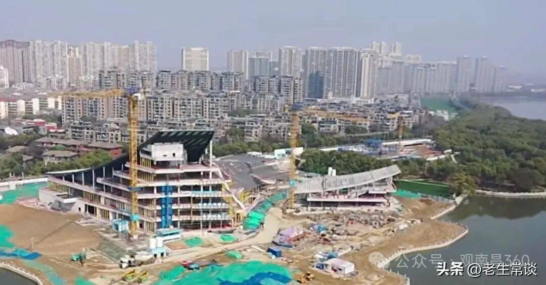 - 市图书馆新馆已经封顶,独特的曲面屋顶像一片舒展的云,和湖景、江景融为一体。