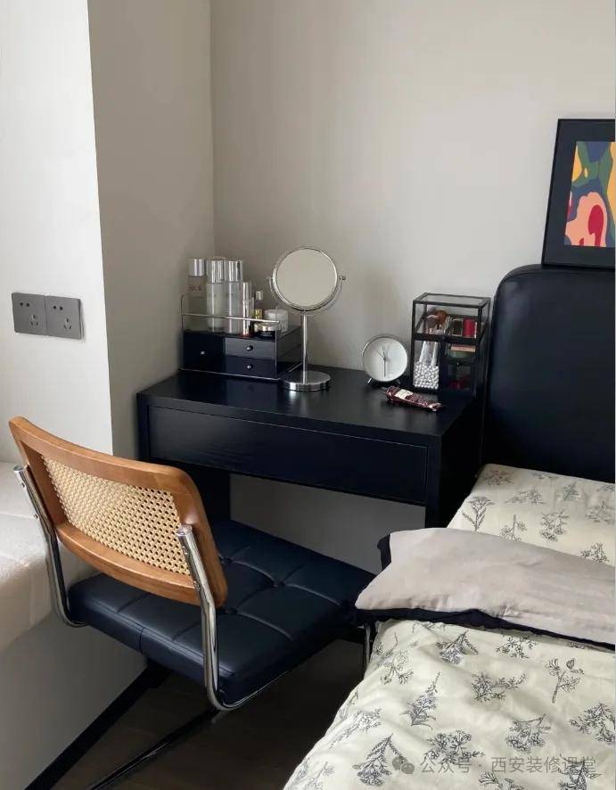03.成品书桌/化妆台代替床头柜。