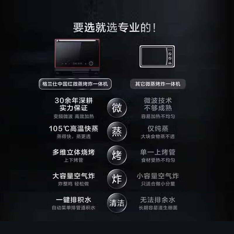 而今天要介绍的这款格兰仕微蒸烤炸多功能一体机,正是为解决这些问题而生。它巧妙地将微波、蒸汽、烘烤、空气炸四大功能集于一身,26L的黄金容量适配3-5口之家,不锈钢内胆不仅耐用易清洁,更能均匀导热。想象一下:早晨用微波功能快速加热牛奶的同时,上层同步空气炸脆吐司;晚餐时先蒸汽蒸鱼保留鲜嫩,再切换烘烤模式给蔬菜上色——这才是智能厨房该有的样子。