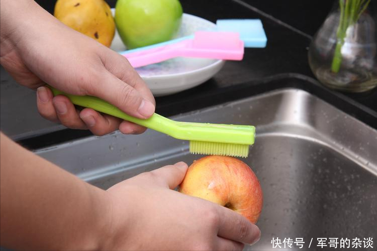 他分享了一个小技巧:对于一些难以清洗的水果,比如荔枝、葡萄,可以先用小刷子对其轻轻的进行着刷洗,再用清水冲洁。