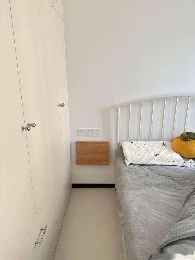 这时就充分的发挥了一下我的想象力,选择在家中的床边装了一个折叠板,这样既能正常的开合衣柜,也不影响日常对于床头柜的使用。