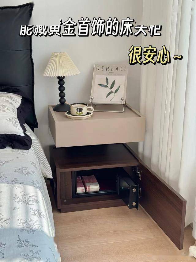 不妨和我一样,选择将保险柜藏在床边,既能当做保险柜使用,同时也是床头柜,一举多得,安全感满满。