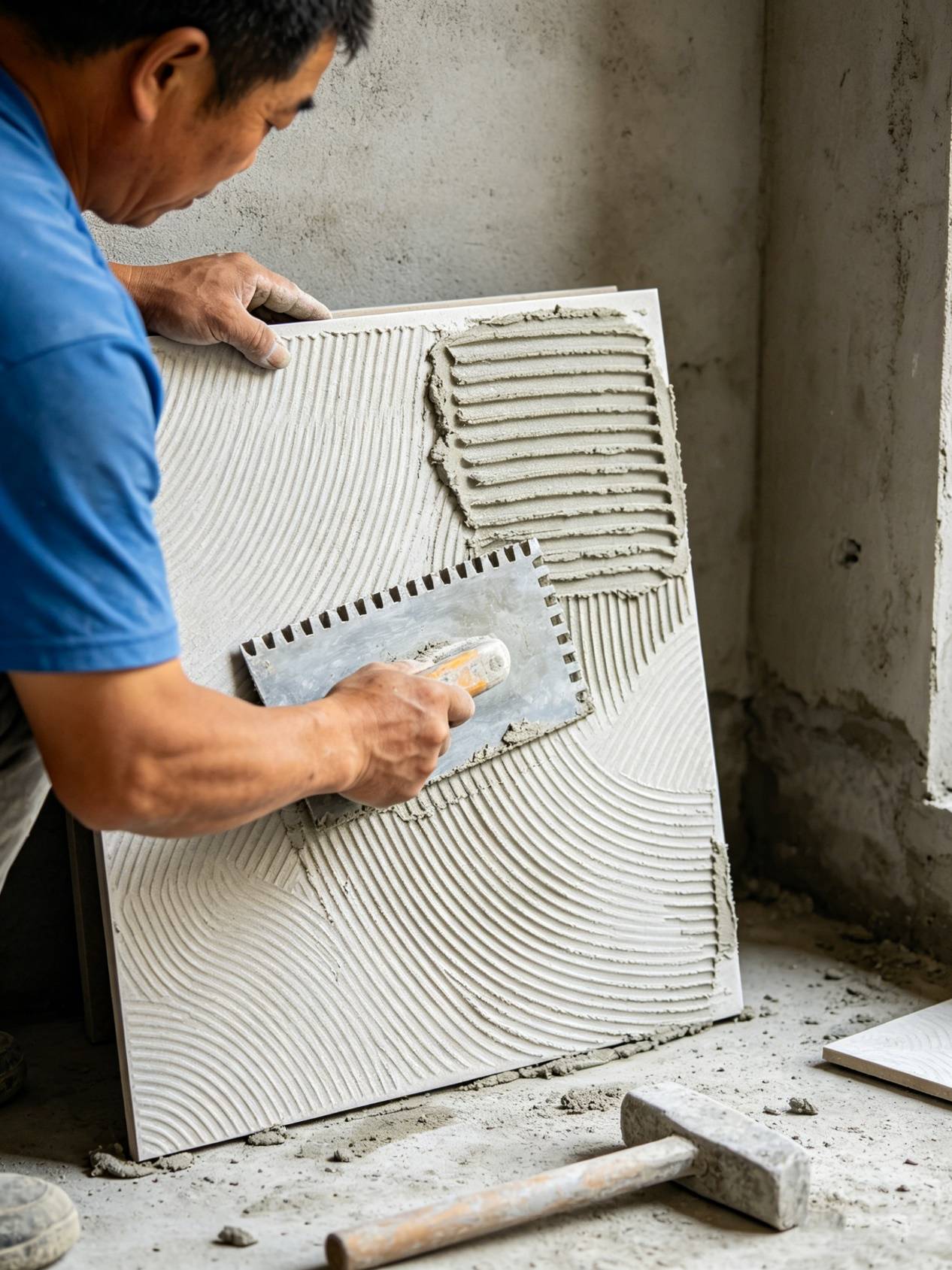 TDW-801 的核心优势,就是 “经济好施工”。它采用成熟的聚合物改性配方,严格遵循 JC/T547-2017 国标,粘结力稳定达标,能轻松适配 800×800mm 以内的常规釉面砖、仿古砖,满足 90% 以上的刚需家装场景。加水即用,搅拌后胶浆流平性佳,新手师傅也能轻松上手,薄贴工艺省料又省工,大幅提升施工效率。
