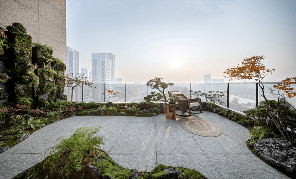 汲取美第奇家族庄园的造园概念,融入江畔立体花园模块,高层营造五大剧场式精致庭院,低密沿南北轴线规划两条林下景观廊道