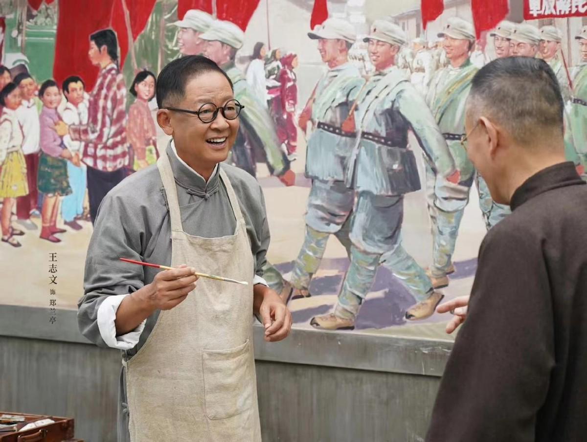 反派特务头子郑兰亭(王志文饰演),将自己的身份伪装成普通的老百姓,经常在各个地方,画宣传解放的壁画。