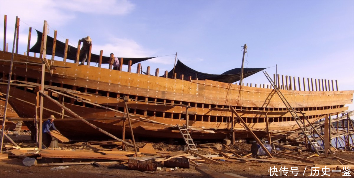 架上龙骨钉上肋板,四周围上木板,这就是古代木船的大概制造过程。