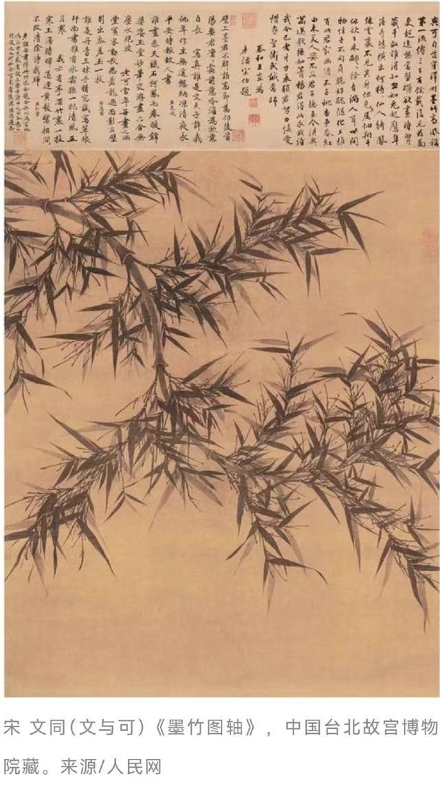 苏轼的好朋友文与可是当时著名的绘画大师,尤其是他的墨竹画深受时人追捧,各地拿着丝绢来求画的人络绎不绝——文与可对此很是“头大”。有一次,他甚至把丝绢扔在地上骂道:“我要拿这些丝绢去做袜子!”后来,文与可知道苏轼将往徐州任知州,便半开玩笑地告诉苏轼,他对求画的人说墨竹画派在彭城(在苏轼任职的徐州),暗示着他们应该去找苏轼求画。还笑称:“这回袜子材料应当集中到你那里了。”之后,苏轼作诗给文与可道:“汉川修竹贱如蓬,斤斧何曾赦箨龙。料得清贫馋太守,渭滨千亩在胸中。”意思是说汉水一带长竹繁茂贱如蓬草,斧头何曾将鲜嫩的竹笋轻饶?料想你这个清贫嘴馋的太守,定把渭滨千亩青竹吞进肚了!据说收到这首诗的那天,文与可正和妻子在谷中游赏,准备烧笋当晚饭吃,“发函得诗,失笑喷饭满案”。