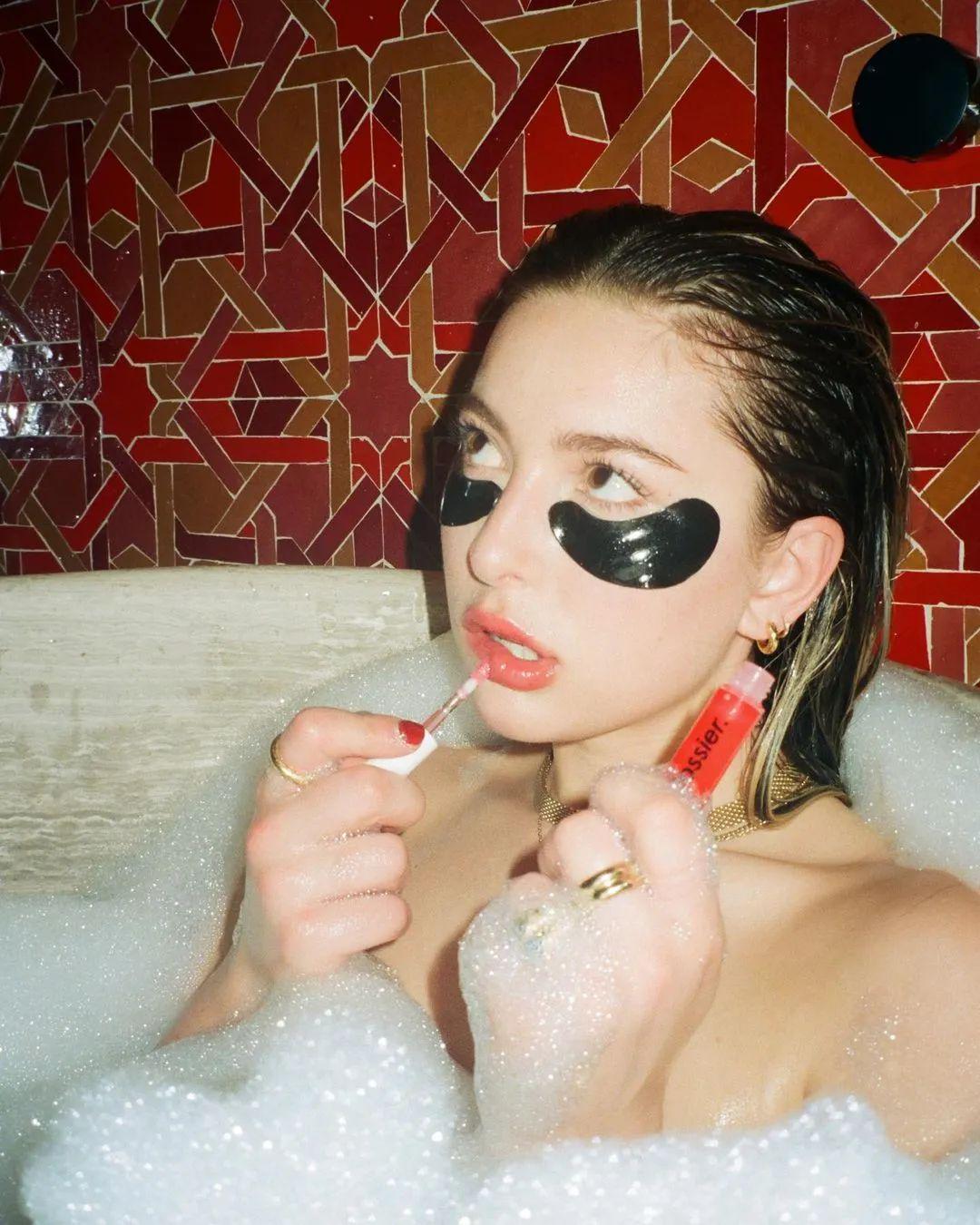 2020年,Eve参与拍摄小众护肤品牌 Glossier 的节日广告大片,不仅有一张青春洋溢的漂亮脸蛋,还很有镜头感,展现出不俗的表现力。