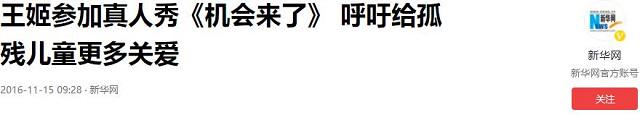 新华网:2016-11-15:王姬参加真人秀《机会来了》 呼吁给孤残儿童更多关爱