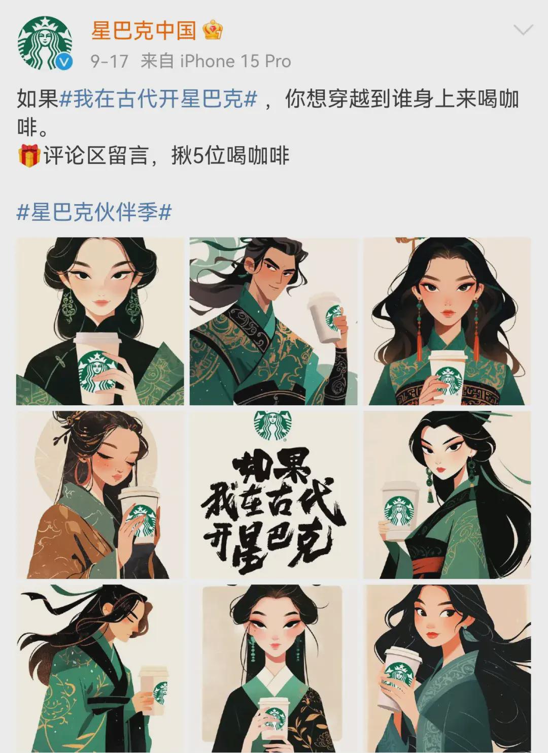 一方面,短剧的确是这两年狂飙起来的流量新贵,快节奏、易上头、成本低、回报高,越来越受广告主喜欢。另一方面,用户的“呼声”也给其不少启发。星巴克中国此前曾对红星新闻透露,在社交平台上常看到一些讨论,例如星巴克开在古代是什么样子,还有不少网友自创AIGC美图。