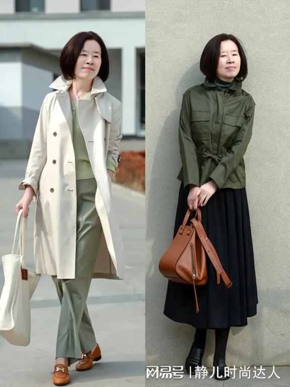 50岁的女人也可以通过穿这样的单品展现你的品位,你可以去选择这种中长款的风衣,避免拉低我们的比例,同时也可以搭配上半身裙或者是九分的裤子,呈现出利落的风格。