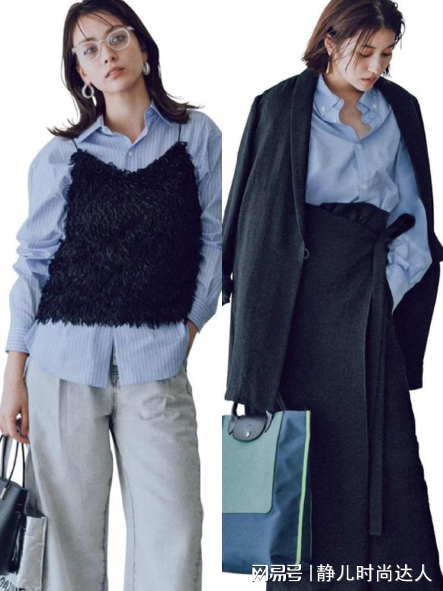 衬衫在秋天是最适合打造叠穿造型的,各式各样颜色的衬衫中,蓝色是最具清新魅力的一种颜色,并且十分百搭。