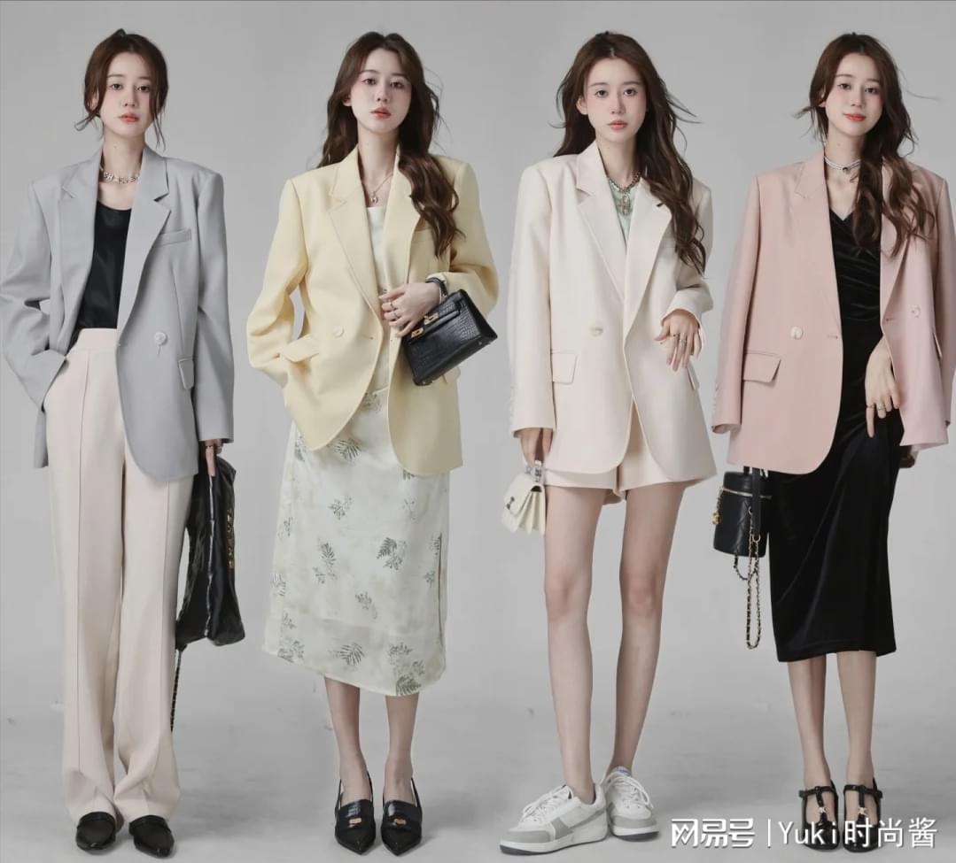 小西装以其利落的剪裁和挺括的版型,成为职场女性早秋穿搭的必备之选。选择一款剪裁合身、颜色低调(如黑色、深灰或藏蓝)的小西装,搭配一条高腰半身裙或包臀裙,不仅能够展现出职业女性的干练与自信,还能在不经意间流露出优雅的气质。
