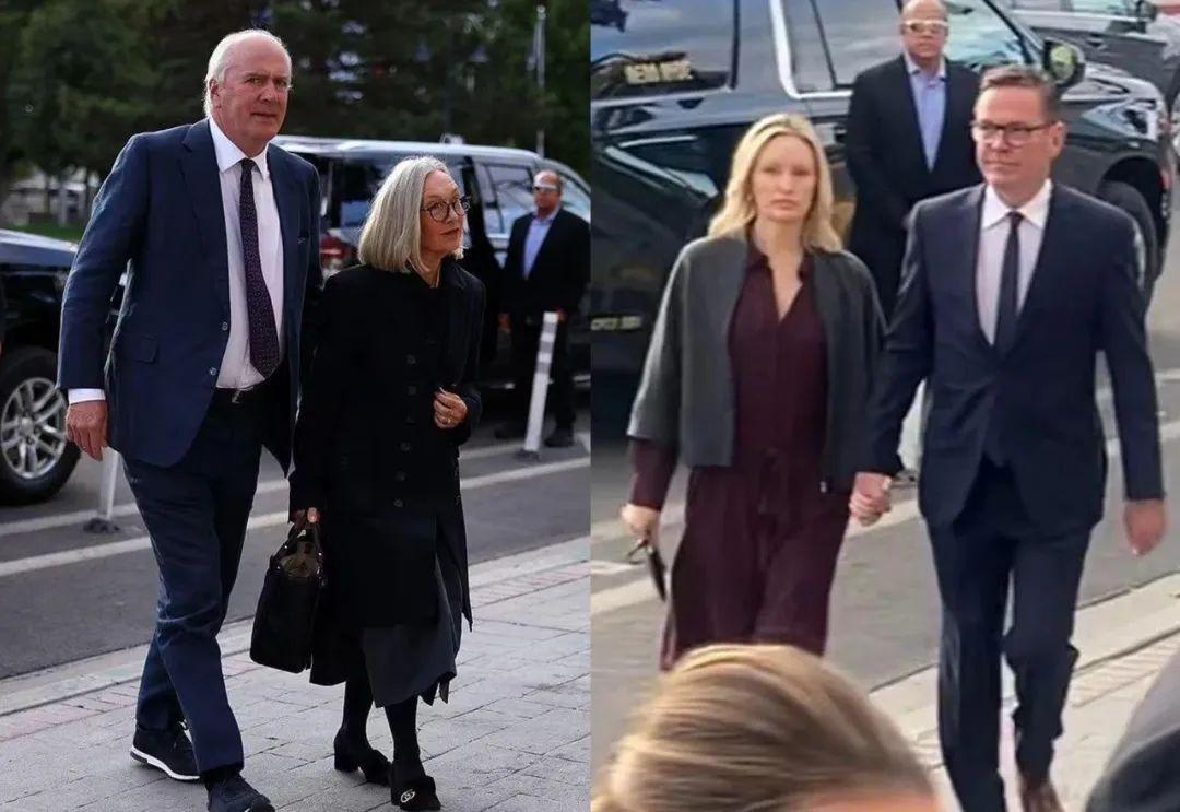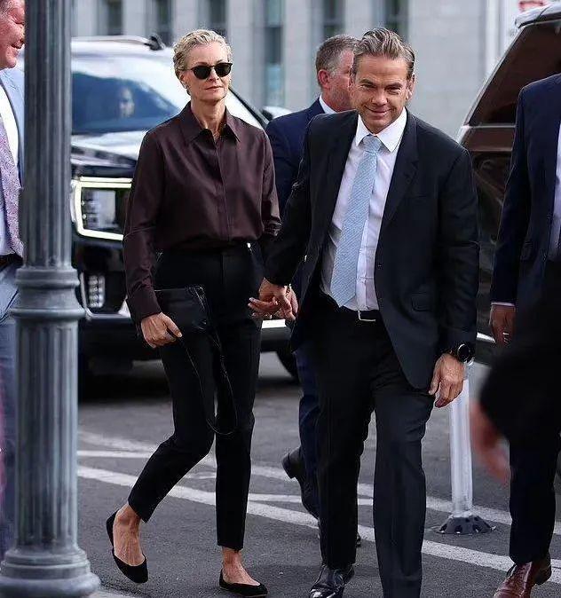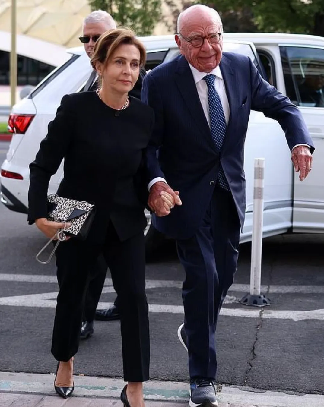 继承之战的几位主人公也悉数到场:默多克的长子拉克兰以及妻子萨拉,两人同样牵手出行,昭示着夫妻立场坚定,利益一体化。