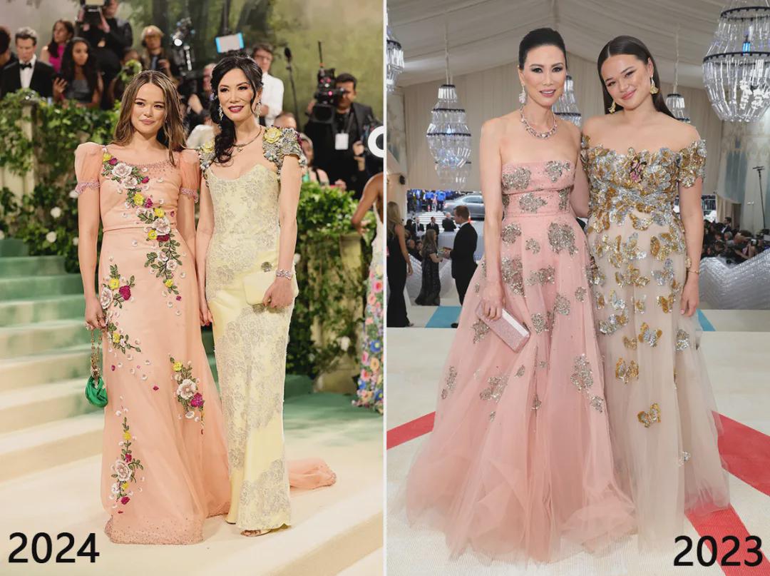格蕾丝又和邓文迪一起亮相Met Gala。贴花点缀的浅色礼服非常有春夏的感觉,只不过造型稍偷懒,跟去年的画风如出一辙。