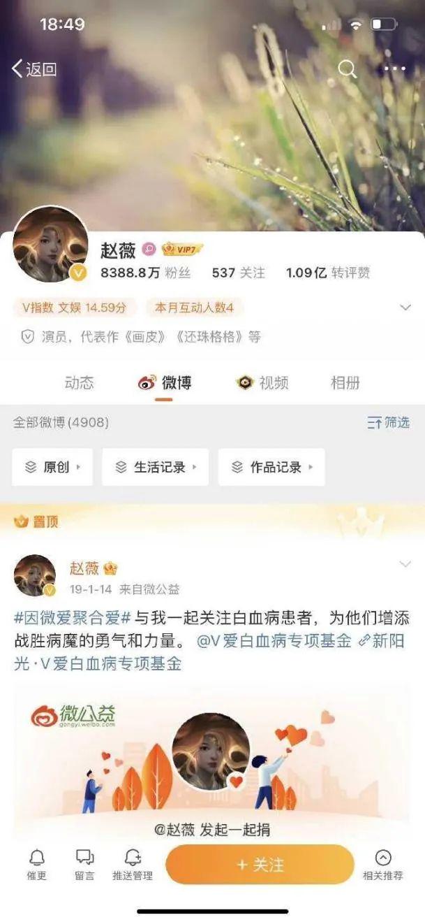 有网友发现,赵薇的社交平台账号在今年春天就解封了,俨然能看到她的演员认证和代表作品。