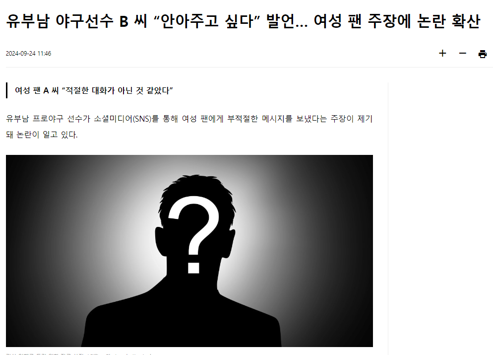 目前,A某的曝光文章正以网络社区为中心被不断扩散。看到这些内容的网友们纷纷表示:“已经不是第一次出现这样的爆料了,难道是因为今年女性粉丝增加了的原因吗”、“虽然不知道这位选手是谁,但是我作为棒球球迷的朋友也在给选手发送了应援信息后收到了见面提议”、“好脏啊,这种人完蛋的不止是棒球人生,完蛋的会是整个人生”、“他的妻子最可怜,希望能够及时止损”……