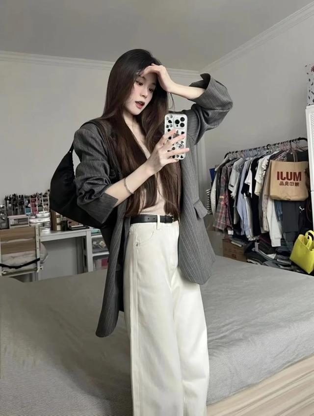 姐妹们,穿腻了蓝色和黑色的牛仔裤,不妨试试奶油色色调啊!