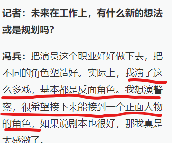 他说,他想演个好人,虽然演了很多戏,但是都是反面人物,希望能演一个正面人物,比如警察。