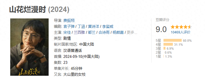 《山花烂漫时》豆瓣开评分,高达9.0分,可以说是很高了。