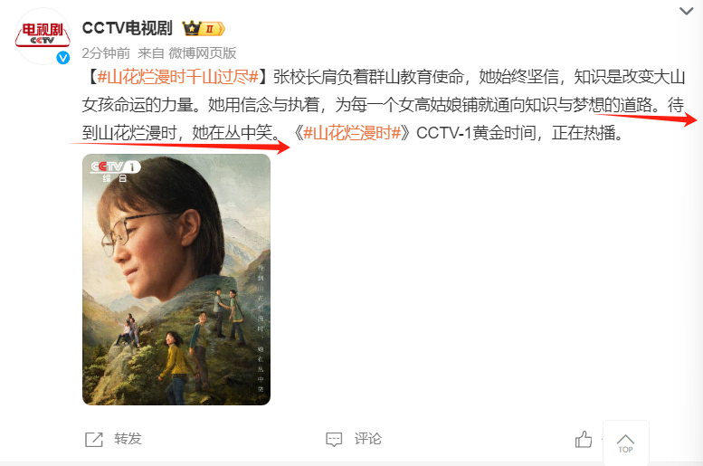 就像CCTV电视剧官博说的一样,待到山花浪漫时,她在丛中笑。