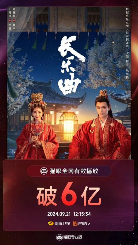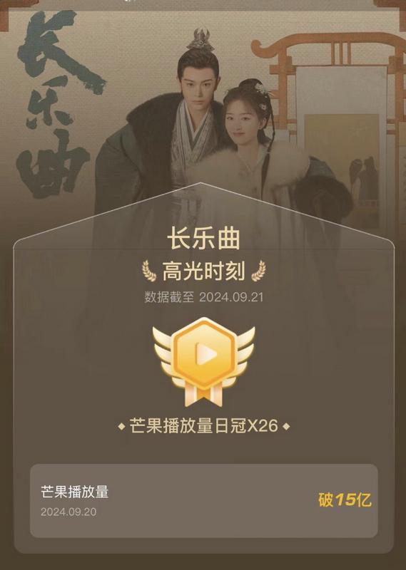 《长乐曲》在湖南卫视上星播出后,首日收视率达到2.4,随后在网上的讨论度也一直居高不下,相关话题多次登上微博热搜。据最新数据显示,该剧在电视剧热度周榜中排名第三,卫视收视榜上屡次夺冠,累计播放量突破16亿。同时,该剧在泰国TrueID、欧美Viki等平台播出,并在Rakuten Viki平台上中国剧集中的播出位列第一,获超过1300名海外观众9.3分的高评价。