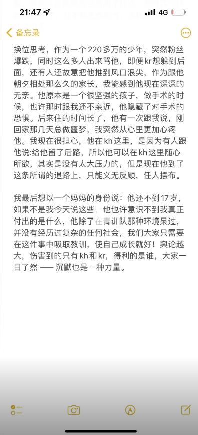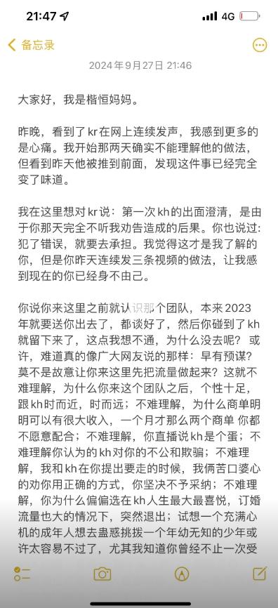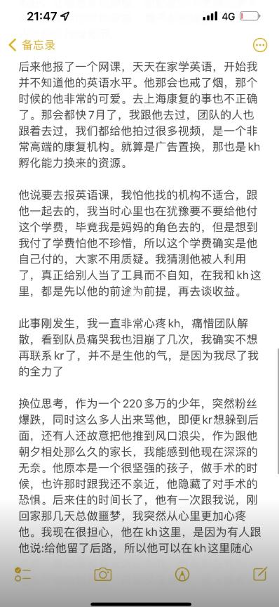 长文中,周楷恒妈妈表示,柯冉手术和学英语的钱确实是柯冉自己出的,但是手术的钱她找保险公司报销了绝大部分并转回给了柯冉,学英语让柯冉自己出报名费是担心他如果不是自己出钱会不珍惜;