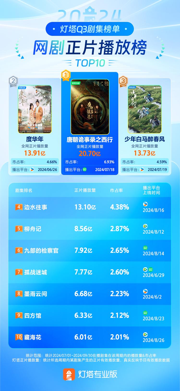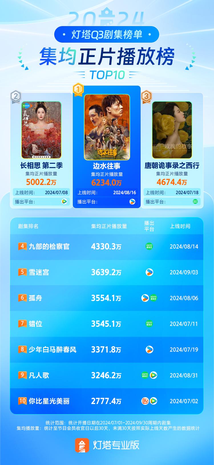 Q3剧集正片播放量排行·全网剧集TOP10