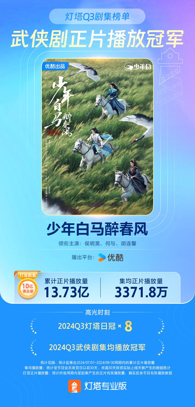 《少年白马醉春风》Q3武侠剧播放量冠军