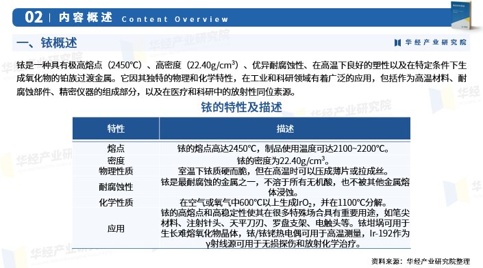 一、铱发展现状