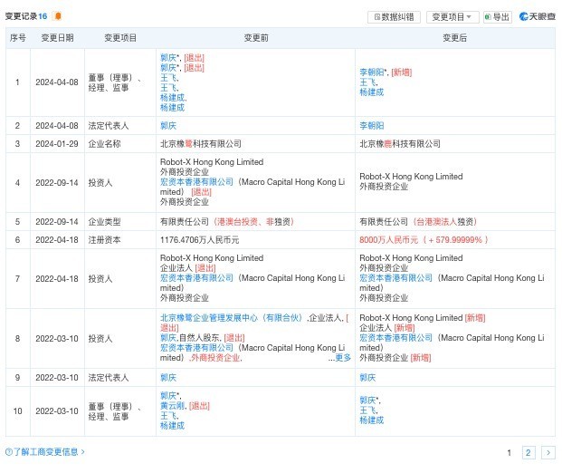 天眼查App显示,继2022年退出股东行列后,今年4月,老K相继卸下了橡鹿科技的法定代表人、执行董事,同时还卸任了橡鹿机器人(江苏)有限公司的执行董事。